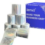 LENVII 50mm×50mm 銀色丸型感熱ラベルステッカー 黒のフォント感熱紙ロール 1040枚 – 8ロール×130枚、4防仕様(耐引き裂き/防水/耐油/耐スクラッチ)円形多用途粘着ステッカー ホーム/オフィス/バーコード/値札/DIYラベル/配送ラベル/整理収納/製品ギフトタグ用 |