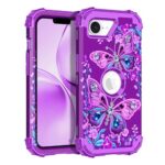 LONTECT iPhone 16e ケース 3 in 1 耐衝撃 高耐久 頑丈 ハード PC + ソフトシリコン フルボディ 保護カバー ガールズ レディース ケース Apple iPhone 16e 2025用 ダイヤモンド パープル バタフライ |