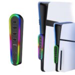 PS5 Pro/PS5 Slim 用USBハブ【新登場-Type-c高速転送対応】PS5 Pro 用 4ポート USB拡張ハブ 一体型 設置簡単 高速拡張ハブ スプリッター アダプター HUB2.0 USBポート 安定性 軽量 コンパクト外付け (ブラック-RGBランプ付) |