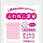 ふわねこ堂 L判 生写真用 ぴったりスリーブは、200枚入りで大切な写真をしっかり保護します。厚さは適度で、収納時の摩擦を軽減し、サインや保存に最適です。