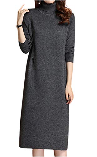 エムエルーセのハイネックニットワンピースは、ひざ丈で体型カバー効果があり、暖かくておしゃれ。長袖でカジュアルからビジネスシーンまで対応。Mサイズ、グレーで、10代から50代まで幅広い年代に人気の清楚で上品なデザイン。