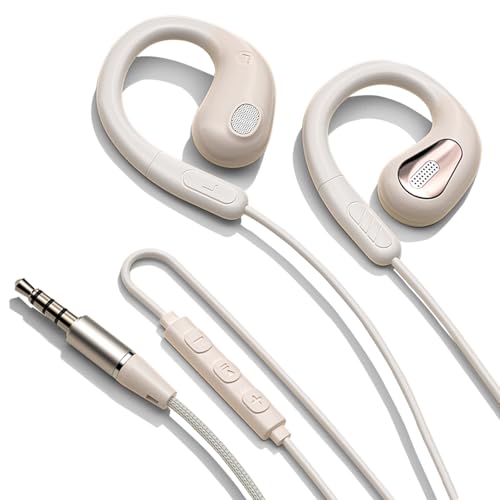 2025初登場の有線マイク付きオープンイヤーイヤホン。耳を塞がず、ながら聴きに最適。音量調整、着信対応あり。スポーツやデスクワーク、アウトドアにも対応。潔癖症の方にも安心な機能。ベージュ色。