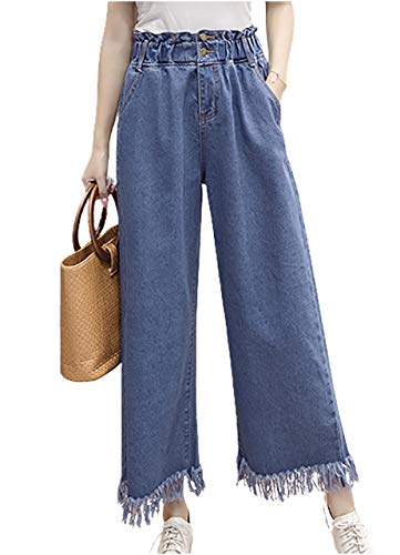エムエルーセのガウチョパンツは、デニム素材でストレッチ性あり。ウエストゴム、フリンジデザイン、サイドポケット付き。カジュアルな春夏スタイルにぴったりの9分丈。ママやマタニティ、旅行用にもおすすめの可愛いアイテム。