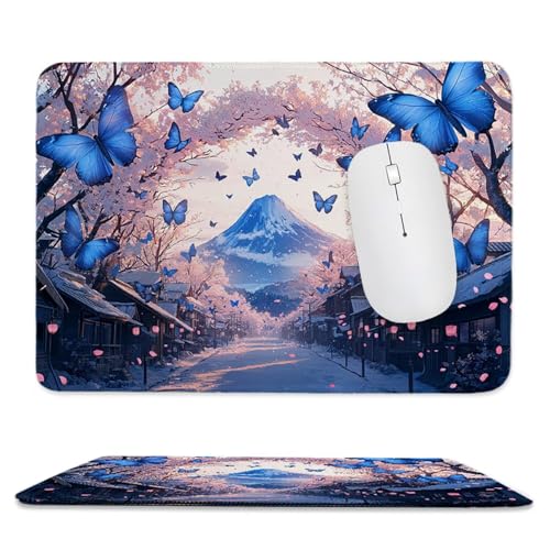 蝶々デザインの富士山をあしらった340 x 280 mmのゲーミングマウスパッド。薄型・軽量で持ち運びに便利。防水対応で滑りやすく静音設計。デスク整理にも最適な省スペースタイプ。