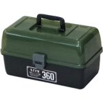 JEJアステージの収納ボックスXシリーズ、シェルフパワー360-G3Xはブラックグリーンのカラーで、サイズは幅36×奥行21.7×高さ20cm。DIYやガーデン用品の整理に最適なアイテムです。
