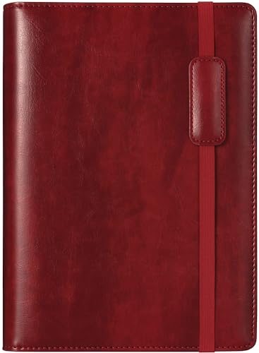 RIHUAのA5システム手帳は、6穴リングでスケジュール管理に便利。リフィル付きで、革製のメモ帳、カード収納も可能。ビジネスやオフィスで使える、シンプルで上品なワインカラーの手帳です。