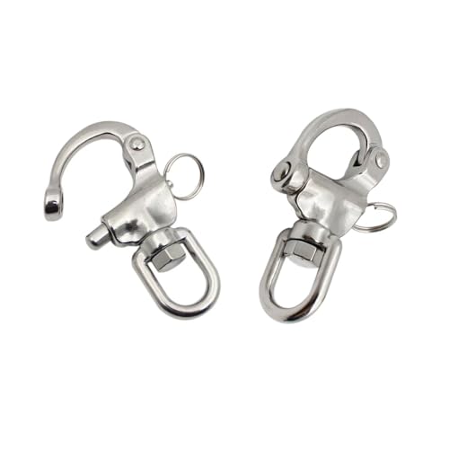 スナップシャックル(スイベルタイプ)2本入り。クイックリリース機能で使いやすく、316ステンレス鋼製で耐久性抜群。ヨットやボート、スピンネーカー、カーハリヤードに最適。サイズは70mm。