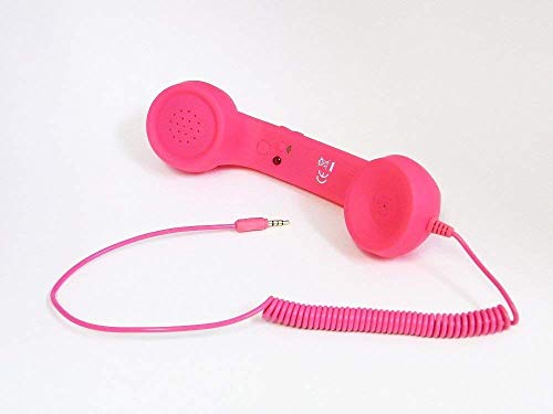 Parishopのスマホ受話器はiPhone/iPad対応の有線ヘッドセット。3.5mmプラグで接続し、反放射線機能搭載。レトロデザインで携帯電話やコンピュータに最適。便利な首挟み式。カラーはローズ。