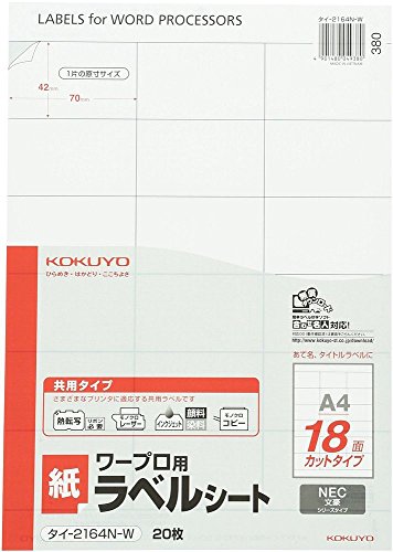 コクヨのワープロ用紙ラベル、NEC用A4サイズ、18面仕様で20枚入り。まとめ買い3冊セットでお得。用途に応じてラベルを簡単に作成できます。使いやすさと高い品質が魅力です。