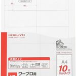 コクヨのワープロ用紙ラベル(キャノン用)は、A4サイズで10面に分かれており、20枚入りです。まとめ買いとして3冊セットで提供され、ラベル作成が効率的に行えます。