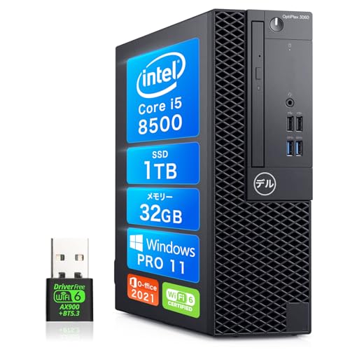 デル OptiPlex 3060SFFは、Core i5 8500、メモリ32GB、SSD512GB搭載。Windows11 Proで、WIFI6、4KHD、マルチ画面対応。事務作業や家庭用に最適。180日保証付き。
