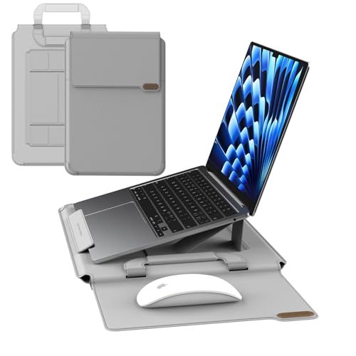 Nillkinパソコンケースは、13-14.2インチのノートPCに対応。両方向持ちやすいマグネットハンドル、厚手EVAプロテクター、PCスタンド機能付き。撥水加工で耐衝撃、傷防止。持ち運びに最適なグレーのPUレザー製。