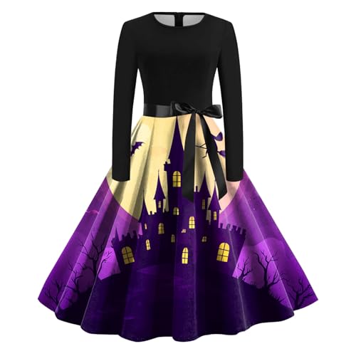 ワンピース レディース ハロウィン用の可愛い魔女コスプレです。長袖 Aラインデザイン、ロングスカートで、イベントや文化祭にぴったり。色はパープル、サイズは2XLです。