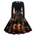 Ramiterのパーティードレスは、レディース向けのハロウィンコスチュームで、レトロなデザインが魅力。Aラインの膝丈スカートで、オレンジ色が華やか。フォーマルな場にも適し、クリスマスやコスプレにも最適。