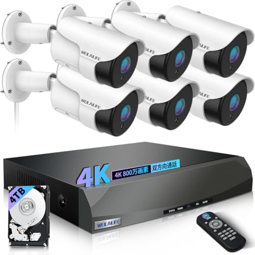 WEILAILIFEの防犯カメラセットは、800万画素の4K解像度、双方向通話機能、130°の超広角を提供。POE給電に対応し、家庭用として6台のネットワークカメラで24時間常時録画が可能。スマホやパソコンでもアクセス可能です。