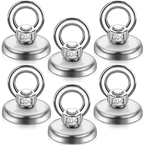 6個セットの超強力ネオジムマグネットフック。直径36mm、垂直耐荷重45kg、防水防錆のステンレス製。キッチン、オフィス、屋外で使用可能。壁面取り付けで便利です。