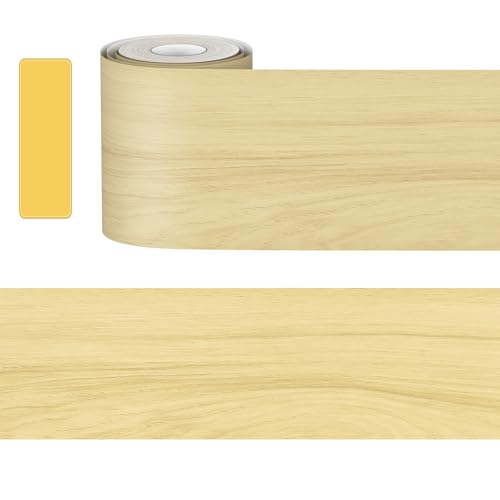 Anlomaの木目マスキングテープは、幅10cm、長さ5m、ライトイエローオーク木目で、厚手のリメイクシートです。強い粘着力があり、防水防汚も特長。窓枠や壁紙のDIY模様替えに最適です。