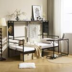 【2025 ロフトベッド シングル デスク付き 収納棚&有孔ボード付属 北欧風 木目調 スチール製 耐荷重210kg 大人用 子供用 一人暮らし ワンルーム 学習机 ベッド 机 一体型 耐震設計 メッシュ床 通気性 ブラック コンセント付き 宮棚 移動式 キャスター ハンガーバー コンパクト 多機能 頑丈 安定感 (ブラック) 高価買取中