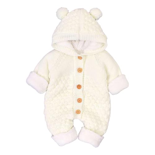 [TXWZM] ベビー服 男の子 新生児 冬 ロンパース 女の子 フード付き ニット カバーオール 幼児 前開き 長袖 パジャマ かわいい クマ 着ぐるみ 厚手 暖かい 赤ちゃん 可愛い 動物 ジャンプスーツ 出産祝い 室内着 外出着(裏起毛ホワイト,66) 高価買取中