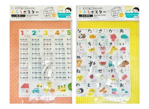 【2種セット】小久保工業所の「おふろポスター」は、ひらがなと九九を学べる浴室用教育アイテムです。水をつけて貼れる50×32.5cmサイズで、小学校のお受験対策や知育に最適。日本製で安心です。