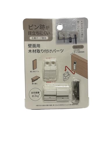 壁面用の木材取り付けパーツ。石膏ボードにも対応し、ピン跡が目立ちにくい設計。耐荷重は約3kgで、軽量な飾りや小物の取り付けに最適です。