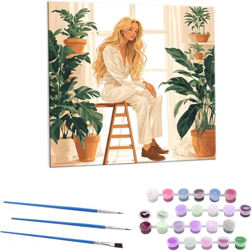 女の緑数字油絵キットは、45x45cmのフレームレスキャンバスにブラシとアクリル絵の具が付属。大人向けの数字ぬりえで、オフィスやリビングのインテリアに最適なギフトです。