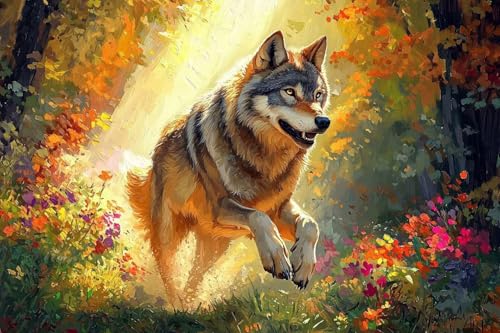 DIY数字油絵塗り絵キット。どうぶつ狼デザイン、70x105cm。ブラシとアクリル絵の具付き。リビング装飾や女性へのギフトに最適。大人向けの数字ぬりえキャンバスアート。