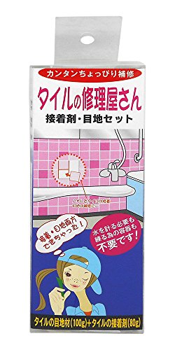 家庭化学のカンタンちょっぴり補修シリーズ「タイルの修理屋さん」は、ホワイト色の目地材100gと接着材80gがセットになっています。タイル補修が簡単に行える便利な製品です。