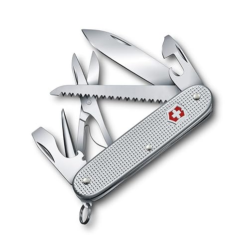 VICTORINOXファーマー X ALOXは、シルバーのスイス製マルチツールで、アウトドアやキャンプに最適。はさみや10機能を搭載し、便利さと耐久性を兼ね備えています。国内正規品です。