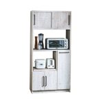 KAGUCOCO 食器棚 完成品は、幅83.5cmのアンティークホワイト仕上げ。レンジ台としても使えるキッチン収納で、日本製の高品質な大川家具。スタイリッシュでおしゃれなデザイン。