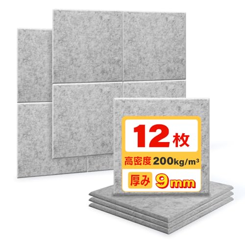 IPICの吸音ボードは、高密度フェルト製で、12枚入りです。サイズは30×30cm、厚さ9mm。防音・吸音効果に優れ、虫ピン付きで取り付けも簡単。カラーはグレーで、壁に最適です。