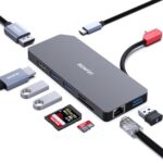 BENFEI 9-in-1ポータブルドッキングステーションは、デュアルモニター対応、3つのUSB Type-Aポート、USB Type-C(10Gbps、100W PD)、SD/TFカードリーダー、RJ45を備え、MacBook Pro/Air 2023及びiMacと互換性があります。