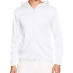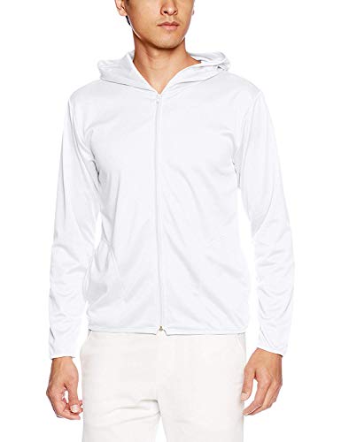 グリマーの長袖4.4オンスドライUVジップパーカー00338-AMZは、軽量で通気性が良く、UVカット機能を備えています。メンズ用ホワイトカラー、サイズは日本のM相当です。