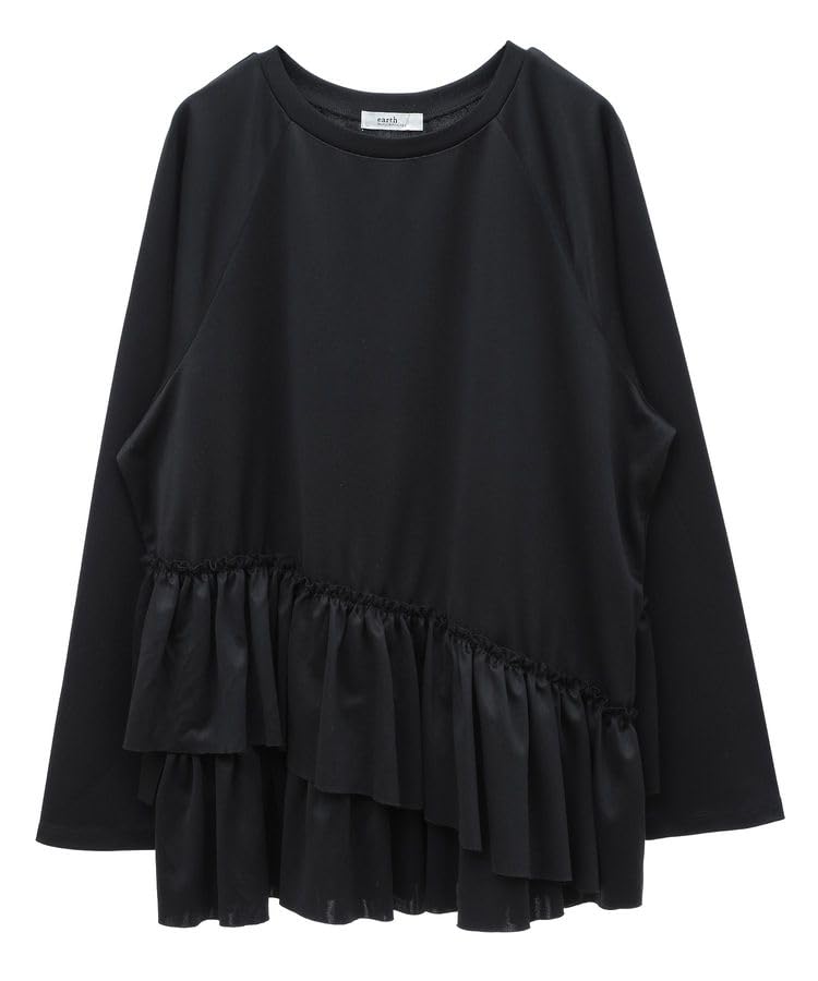 earth music&ecologyのフリルヘムプルオーバー(ブラック、サイズF)は、柔らかい素材で着心地良く、裾のフリルデザインが特徴です。カジュアルスタイルにもぴったりで、デイリーコーデに映えます。