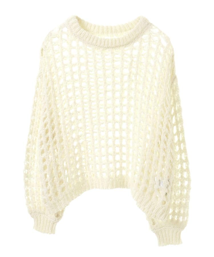 アースミュージックアンドエコロジーのトレーナー、チュールヤーンメッシュニットプルオーバーは、アイボリー色のレディースアイテムで、軽やかな印象と快適な着心地が特徴です。デイリースタイルにぴったりの一枚。