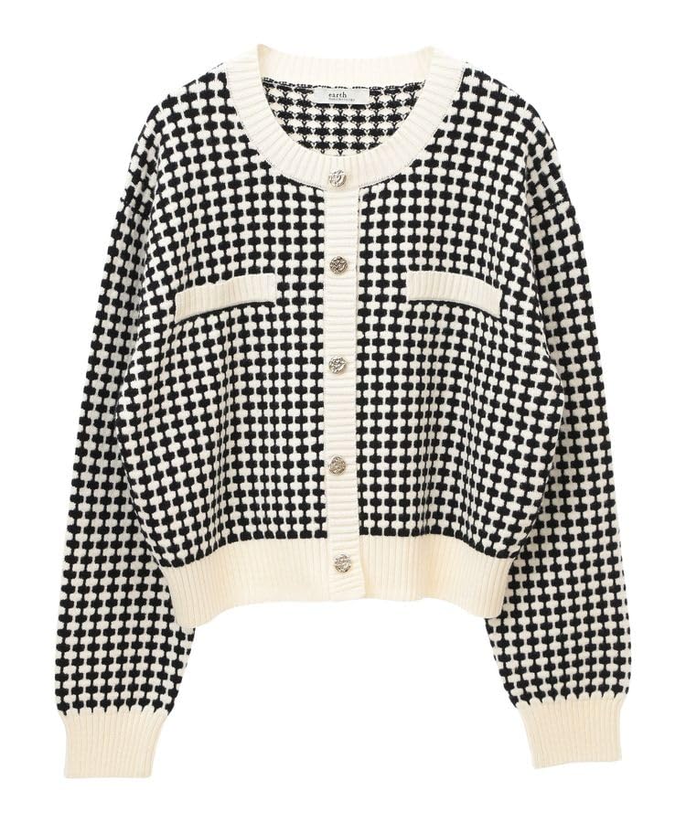 アースミュージックアンドエコロジーのトレーナー、ジャガードニットプルオーバー。女性用アイボリーカラーで、柔らかい素材が特徴。カジュアルなデザインで、コーディネートしやすいアイテムです。