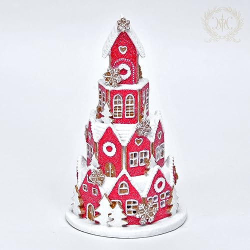 ジンジャーブレッドビレッジのレッドクリスマスオブジェは、パステルカラーのスイーツデザインがかわいらしく、クラシカルな雰囲気を持つ装飾品です。おしゃれな置物としてインテリアにぴったりです。
