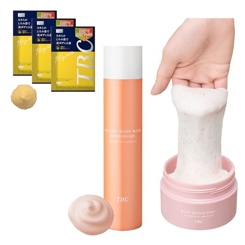 TBCの「のび~るお風呂ケアセット」は、キンモクセイの香りのボディスクラブソープ、クリーミーボディウォッシュ、ボディコンディショニングバスの3種で構成。リラックスしながら肌を美しく整えます。