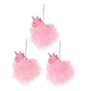 WOONEKY ユニコーンバスボール ピンク シャワー用ヘチマ スキンケアボディスクラバー 家庭用浴室入浴用泡風呂クリーニング用品 3個セット