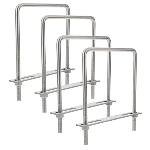 NUOLUXのステンレス製U字金具は、M10X6X8インチサイズで直角スクエアの形状を持ち、ボートトレーラー用の固定金具として最適です。耐候性と高耐久性を兼ね備えています。4個セットで提供。