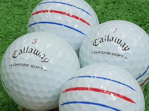 キャロウェイ CHROME SOFT トリプルトラック 2024年モデルのホワイト色。Bランクのロストボール12個セット。優れたスピン性能と直進性で、競技者にもおすすめのゴルフボールです。