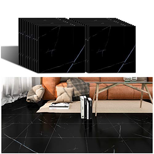 VEELIKEフロアシート フローリングシート フロアタイル 大理石 リメイクシート 黒 30cm×30cm 24枚入り 床タイル フローリング 床材 補修 はがせる 接着剤不要 置くだけ 模様替え リフォーム 厚手 防水 防汚 滑り防止 玄関 キッチン トイレ 浴室 廊下 滑り防止 賃貸 防音 マット つや消し 高価買取中