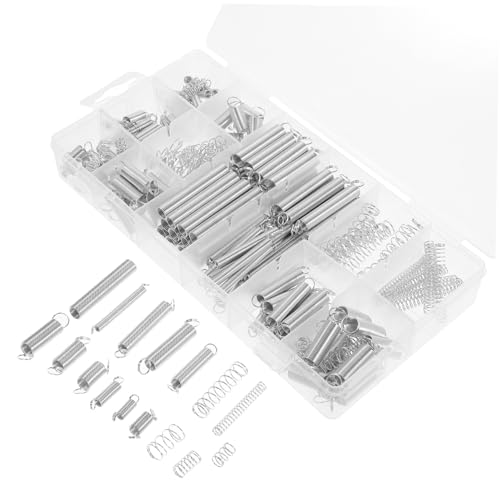ノーブランド品のスプリングセットは200個入りで、小型スプリングや戻り止めスプリング、圧縮バネなど種類豊富。スプリング詰め合わせキットには引張りばねも含まれ、銀色のばね鋼製です。
