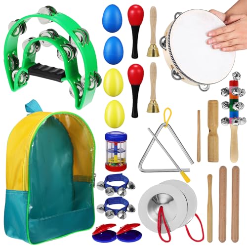 DECHOUS 14ピース パーカッション楽器セット 木製タンバリン トライアングル ハンドドラム付き 収納バッグ付 打楽器 学習演奏用 音楽教育向けの製品情報