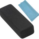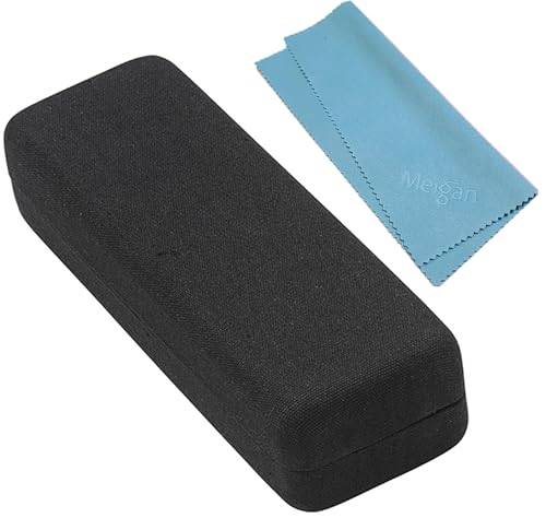 Meigenのコンパクトスクエアメガネケースは、丈夫なアルミ製のハードケースで、バネ式の開閉が特徴です。シックなブラックカラーでクロス付き。型番023218P0、サイズ51。