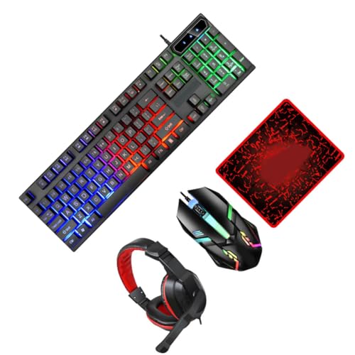 TOBBOMEY 4-in-1ゲーミングキーボードマウスコンボセットは、104キーのバックライト付きキーボード、ゲーミングマウス、大型マウスパッド、ヘッドセットが含まれており、ゲーム体験を向上させます。