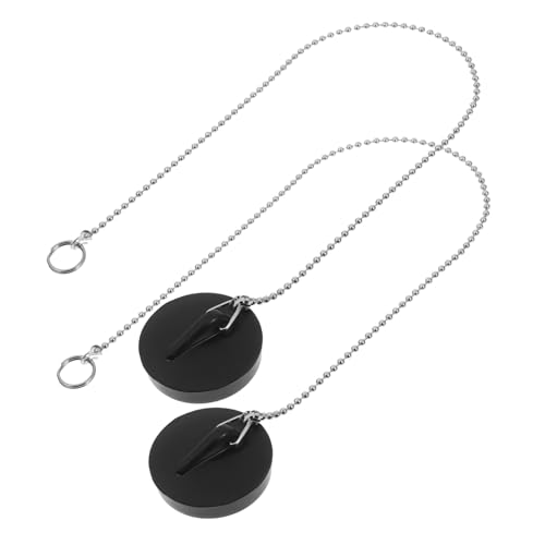 KICHOUSEのゴム製浴槽排水プラグ2個セット。引き輪式でチェーン付き、浴槽やキッチンシンク、洗濯シンクに最適な排水口栓です。水漏れを防ぎ、便利に使用できます。