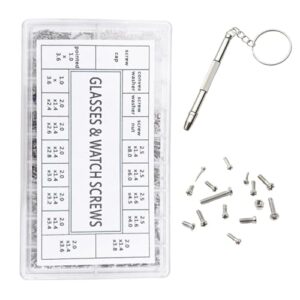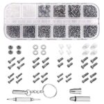 SeonFookの1100個入りメガネネジセット。ステンレス製のネジ、平ワッシャー、肘ピンセット、ドライバー付き。メガネやサングラスの修復に便利なツールです。