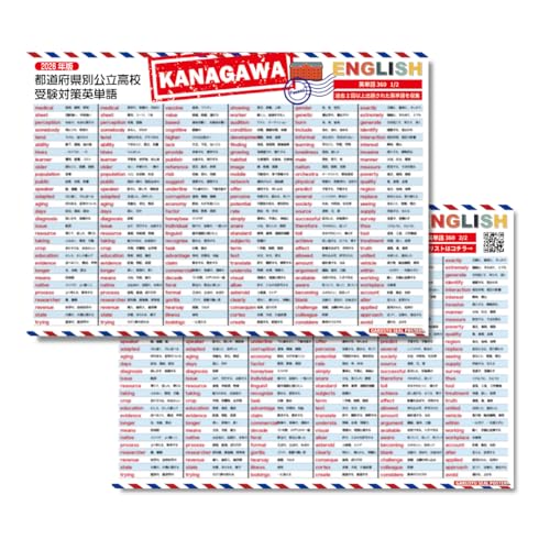 神奈川県公立高校入試に対応した英単語学習ポスター。2026年度向けに頻出単語360語を収録。お風呂などに貼れるサイズで、単語全リスト付き。合格を目指す受験生に最適!
