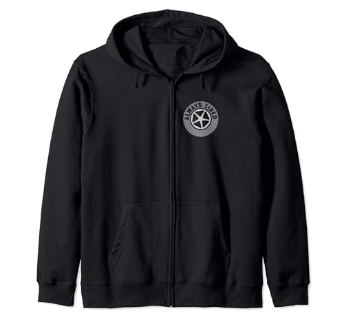 Funny Always Tiredカーホイールのジップパーカーは、整備士向けにデザインされており、タイヤとリムのユニークなデザインが特徴。着心地抜群で、作業中もオシャレを楽しめます。